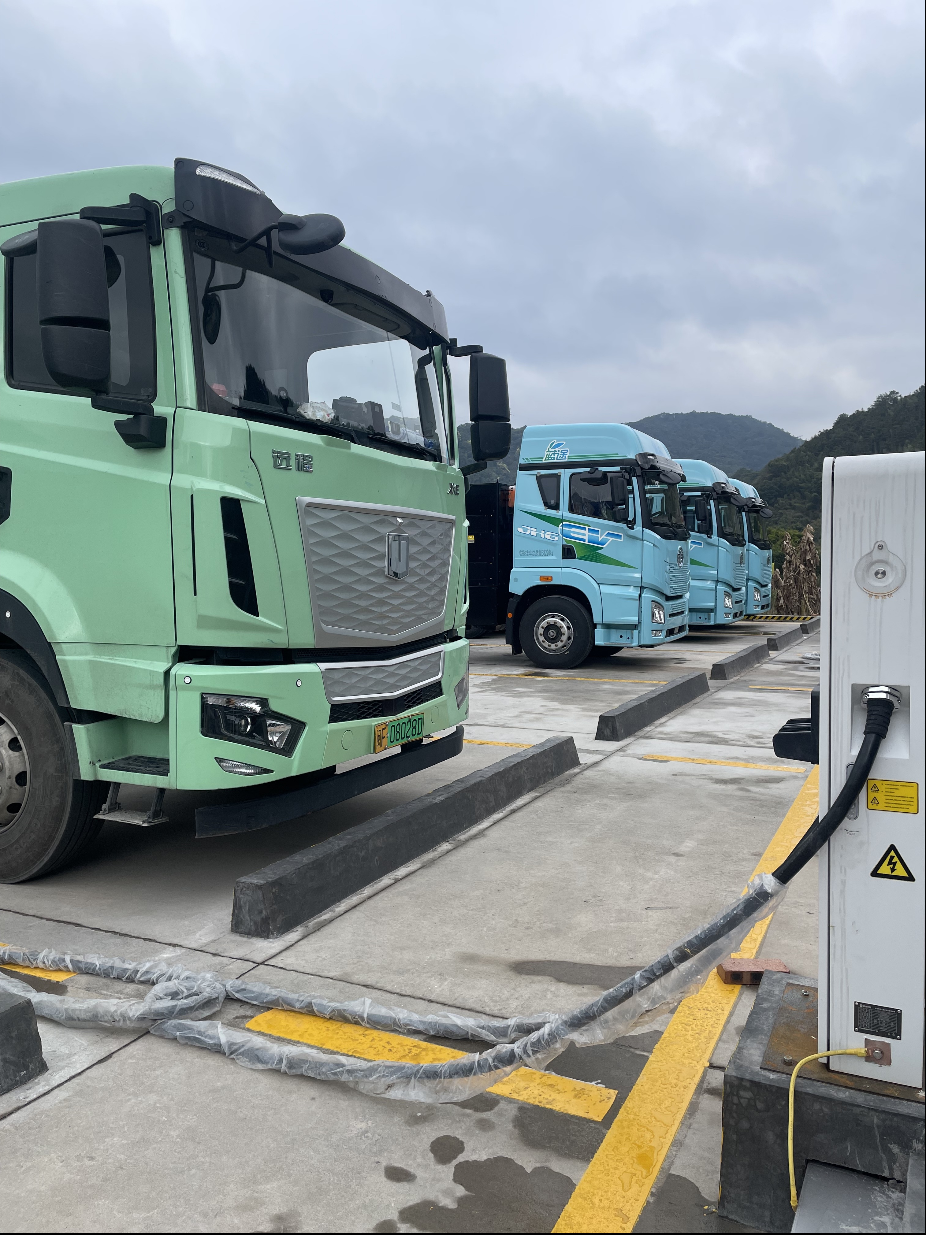 项目位于新罗区龙门镇卡车大世界,紧邻319国道,占地面积约2600平方米,是集大功率超充、绿色电力保供、物流中转及司机服务于一体的区域重卡能源补给站。站内配置2套直流分体式1600kW充电主机、10台300A直流分体式双枪快充终端,总功率达3200kW,配套变压器总容量3200kVA,可高效满足十辆电动重卡同时双枪并充,实现1小时内完成满功率补能。项目配套建设了休息室、淋浴房、公共卫生间等服务设施,为货运司机提供舒适、便捷的服务体验,实现“补能+服务”一体化。截至发稿时间,开业首日实现充电订单29单,充电度数突破3000度。
